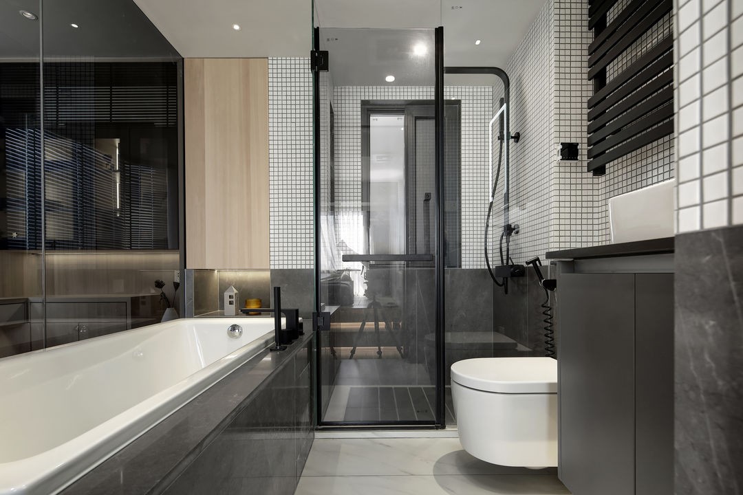 把廚房設計為開放式,吧臺和餐桌結合(很少做飯,平時都是點外賣)。