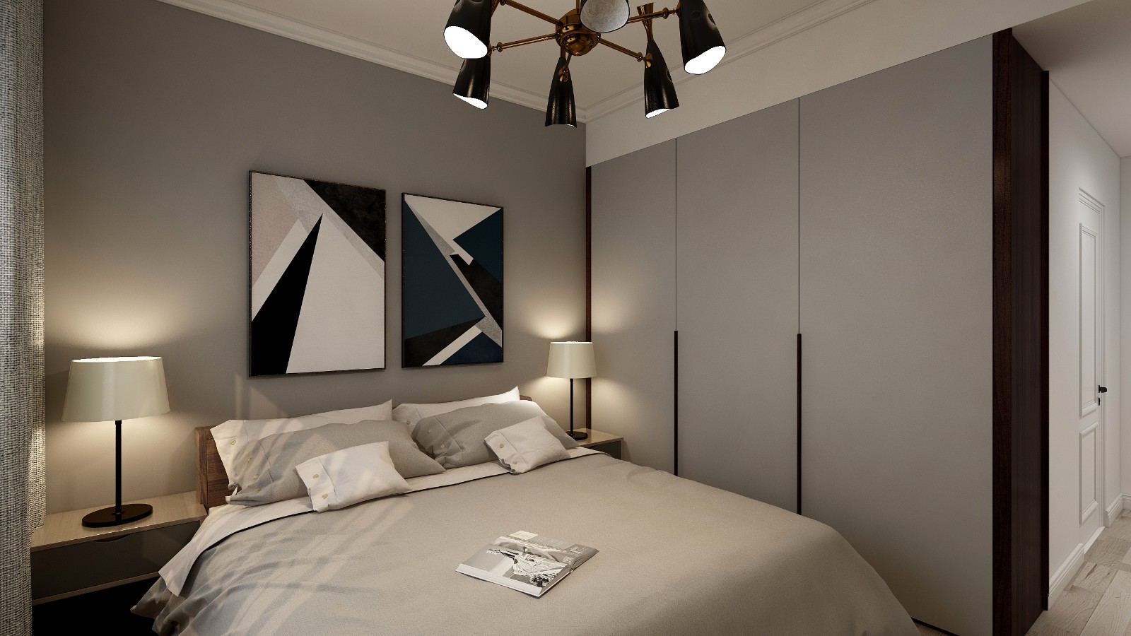 淺灰色的背景墻面漆,時尚動感的簡約風掛畫,十分具有現代風。一絲工業元素的棕灰色沙發搭配黑色的茶幾,深灰色加入一抹亮色黃,使空間的流行元素渲染出來。