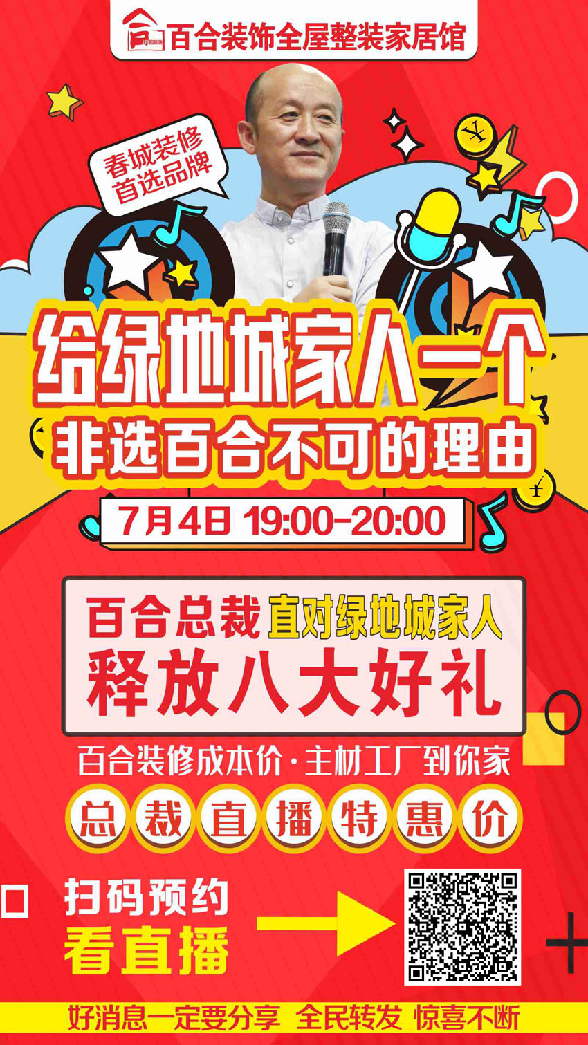 7月4號百合裝飾 總裁直播 綠地城小區(qū)專場福利